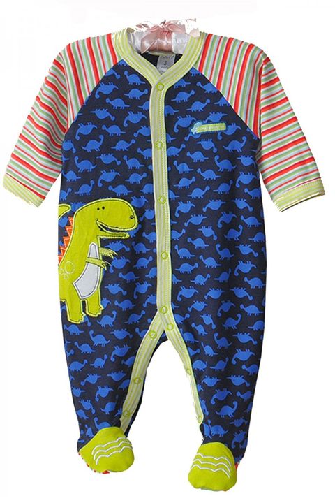 DINASAUR CARTOON WITH STRIPE DESIGN ON SLEEVES BABY ROMPER -BLUE