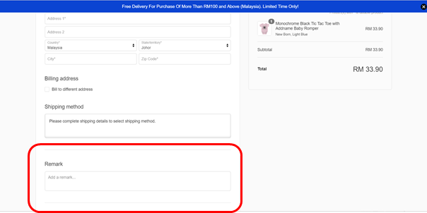 During the “Check Out”page, please key in the personalized name into “ Add a Remark” column at thepage.
